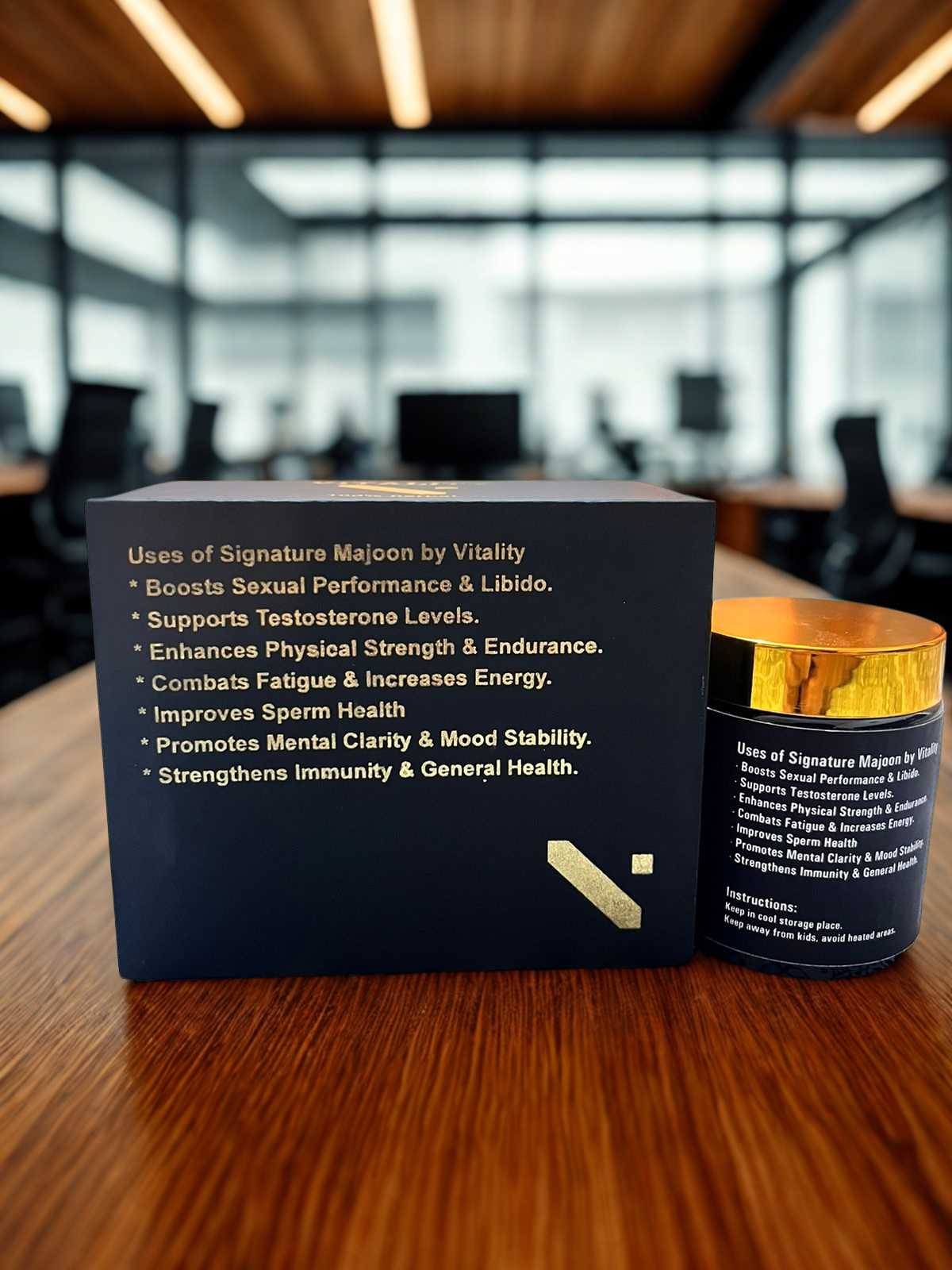 Signature Majoon by Vitality is a premium herbal blend designed to boost male vitality, stamina, and overall wellness. Formulated with powerful natural ingredients, it helps enhance sexual performance, increase energy, and support testosterone levels naturally.